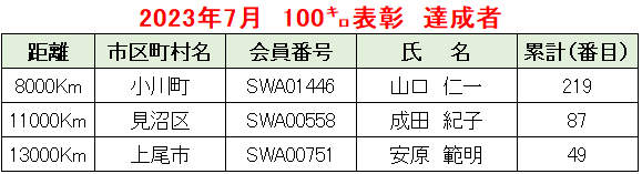 2023年7月 例会距離表彰