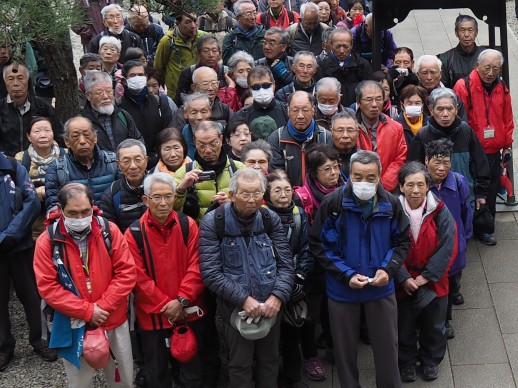 | 吉見観音の手前にて、皆でご祈祷を受けるため、列詰めを行いました。 |