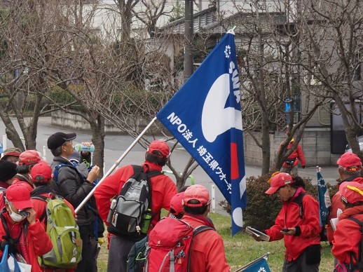 | 埼玉県ウオーキング協会には縁の深い東松山ウオーキングセンターにて出発式を行いました。 |