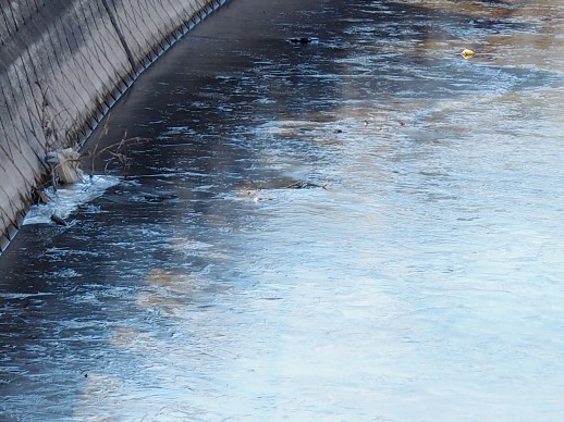 | 見沼代用水東縁を歩きます。用水は寒さで凍っていました。 |