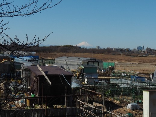 | 快晴の空のもと、富士山がくっきり見えました。 |