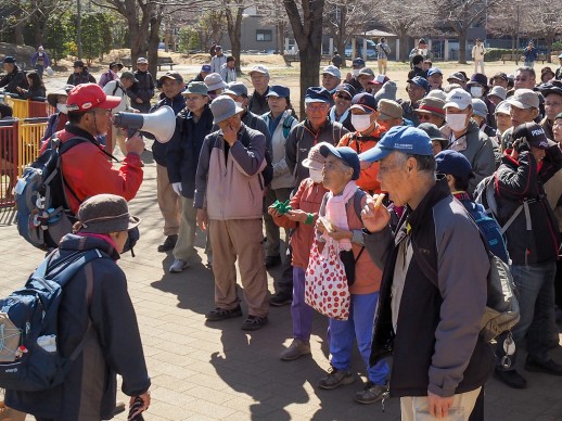 | 東武東上線鶴瀬駅近くのつるせ台公園にて出発式。本日の参加者は358名。 |