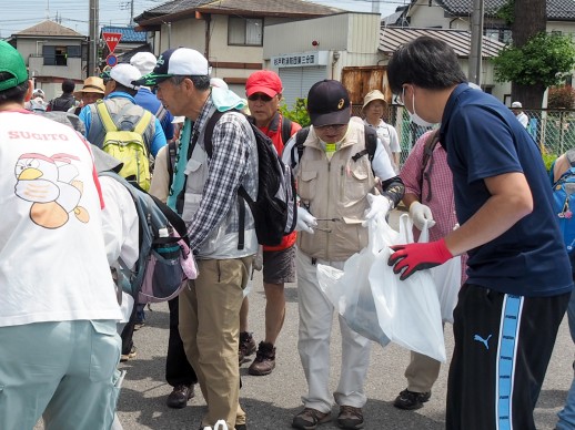 | ゴミ袋と軍手を受け取ってクリーン・ウオークの開始です。 |