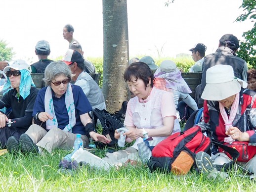 | 柴山沼にて昼食と100キロ表彰を行いました。今日の参加者は324名でした。 |