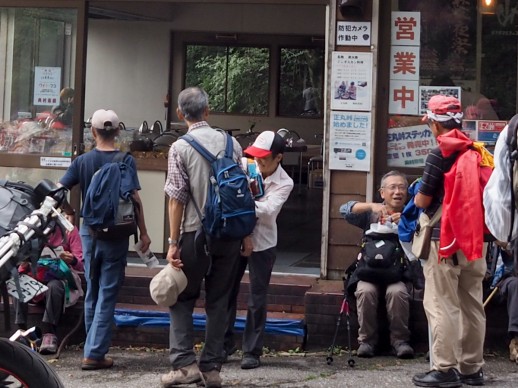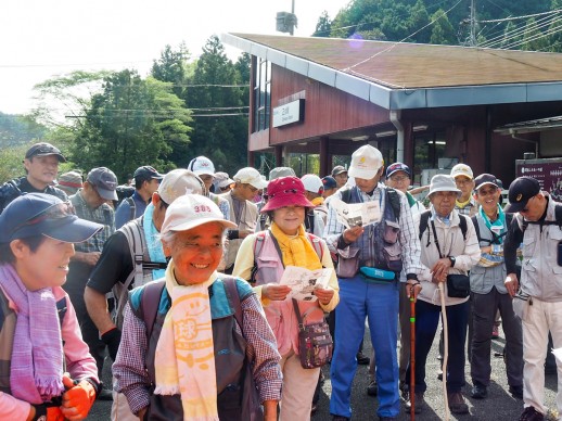 | 正丸峠に建つ、奥村茶屋で休憩です。ここから2班に分かれて、昼食場所の元気プラザへ向かいます。 |