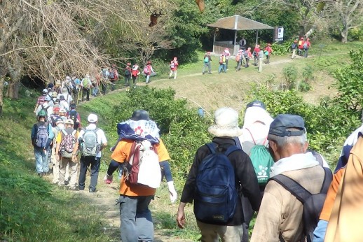 | 天候にも恵まれ、参加者にも恵まれ、元気に出発式。 |