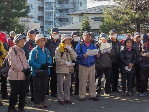 1月21日(日)第907回例会 中山道宿場町(本庄市)・15㎞ レポーター:中村 コース 駅南公園内⇒野家長屋門⇒裸薬師⇒八坂神社⇒城下公園(WC)⇒城山稲荷神社⇒本庄城跡⇒諸井家住宅⇒愛宕神社古墳⇒寺坂橋・賀美橋⇒若泉第一公園(WC)⇒安養院⇒田村本陣門・歴史民俗資料館⇒旧本庄商業銀行煉瓦倉庫(WC)⇒本庄宮本蔵の町⇒金鑚神社⇒若泉運動公園(昼食・WC)⇒蚕影山古墳・山の神古墳⇒はにぽんプラザ(WC)⇒本庄駅 |