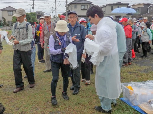 | 今日は年1度のクリーンウオーク。ゴミ袋と軍手をもらってからスタートです。 |