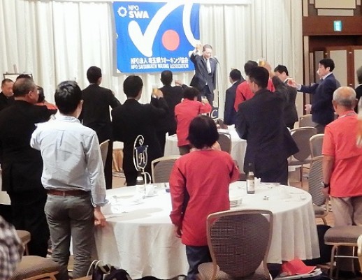| 記念式典のあと、記念祝賀会にて、思い出話やこれからのウオーキングについてなど、親交を深めることができました。 |