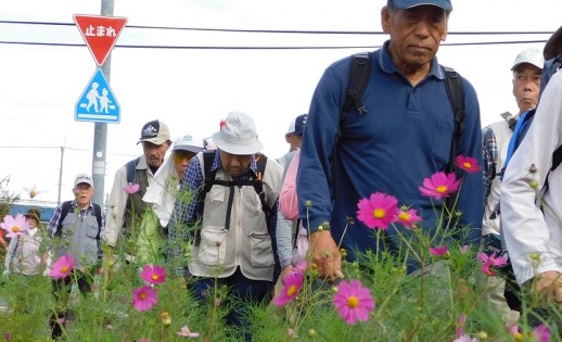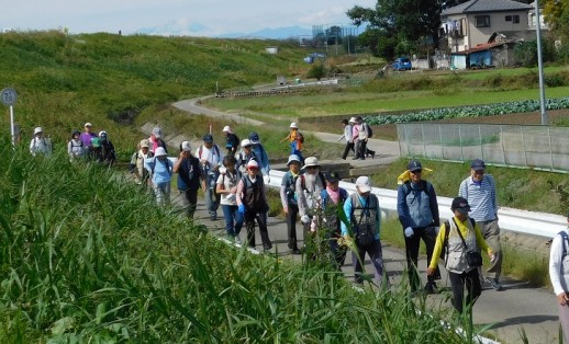 コース:赤見台近隣公園~さきたま緑道~石田堤史跡公園~袋ふれあい公園~前砂の一里塚跡~コスモスアリーナふきあげ~コスモス畑~水管橋~荒川パノラマ公園(昼食・表彰)~吹上駅