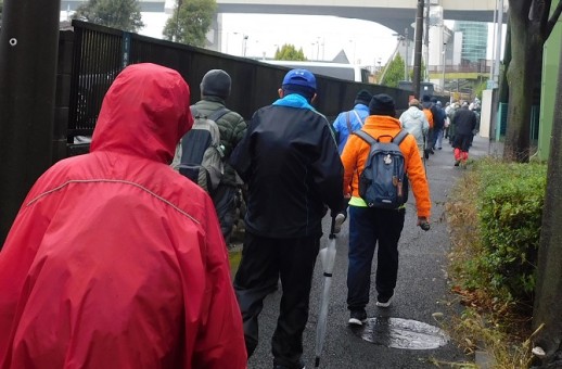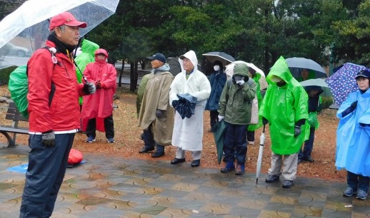 冷たい雨の降る中、ウオーキングです。タイトル通りの天候でした。